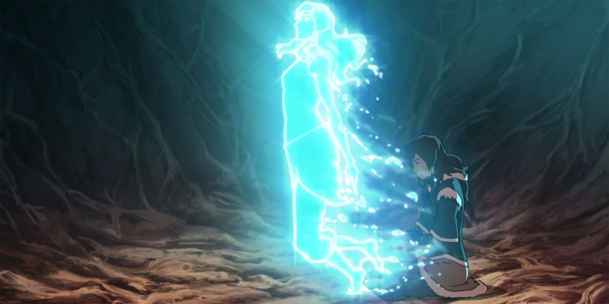 In the twelfth episode of the first season of “The Legend of Korra”, Korra and her companions manage to overcome Amon and his Equalist followers, but not without Amon successfully taking away Korra’s bending abilities. But when Korra finds herself at her most vulnerable, the Avatar, Aang, miraculously appears and reinstates Korra’s bending by gently touching her on the forehead – similar to how the lion turtle had touched him in the past.