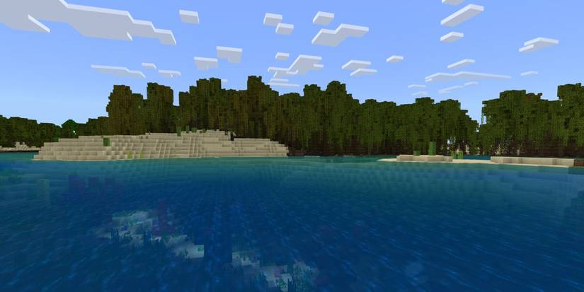 Just off the coast, you’ll discover warm waters filled with colorful coral reefs and tropical fish. While these reefs don’t offer any valuable materials, they’re beautiful to explore. Beyond the mangrove swamps, you’ll find wide, flat beaches ideal for building – whether you’re constructing a new home base or letting your creativity run wild in Creative Mode.