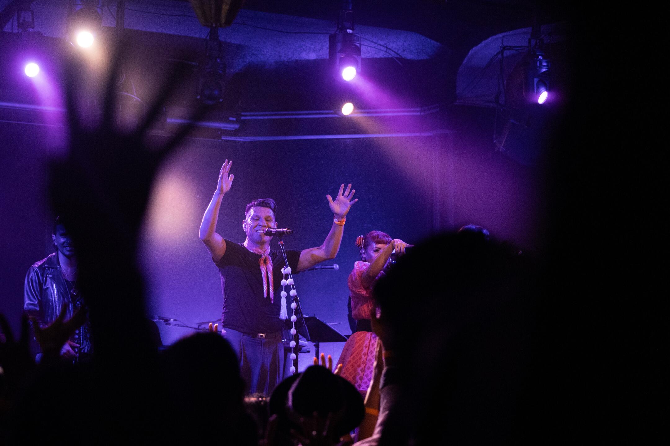 At the Boyle Heights performance, the band members took center stage, with Carlos and Flores positioned in the middle. During breaks between songs, they would inspire the audience with heartfelt messages. Flores exclaimed to the crowd, “Together, we’ll transform the world through each concert. But first, let’s unite on the dance floor.