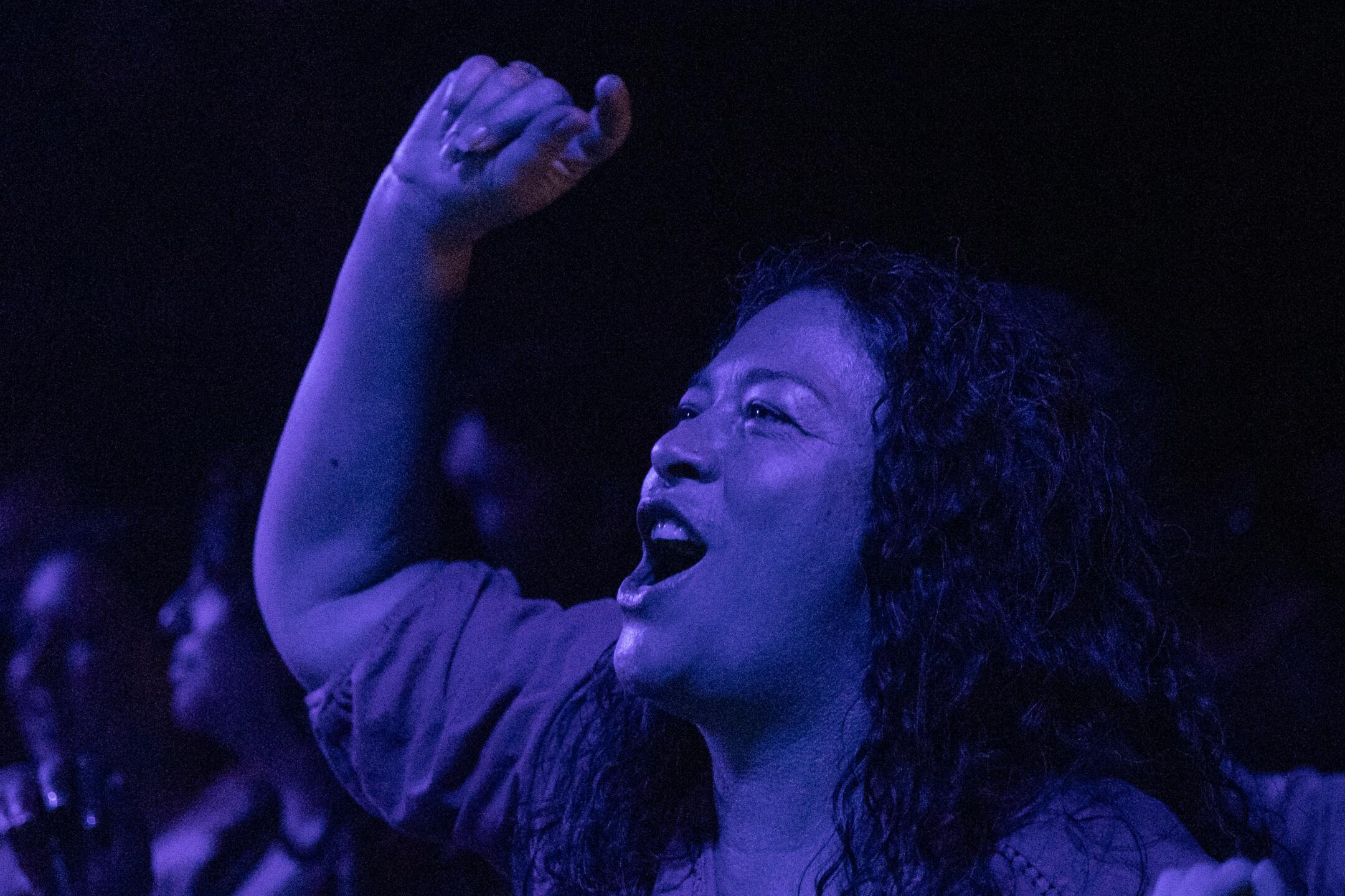 The crowd chants “otra,” and the band comes back for an encore. Flores dedicates the next song to all the “racists, the bigots and sexists who wanna take us back, and we ain’t going back.”