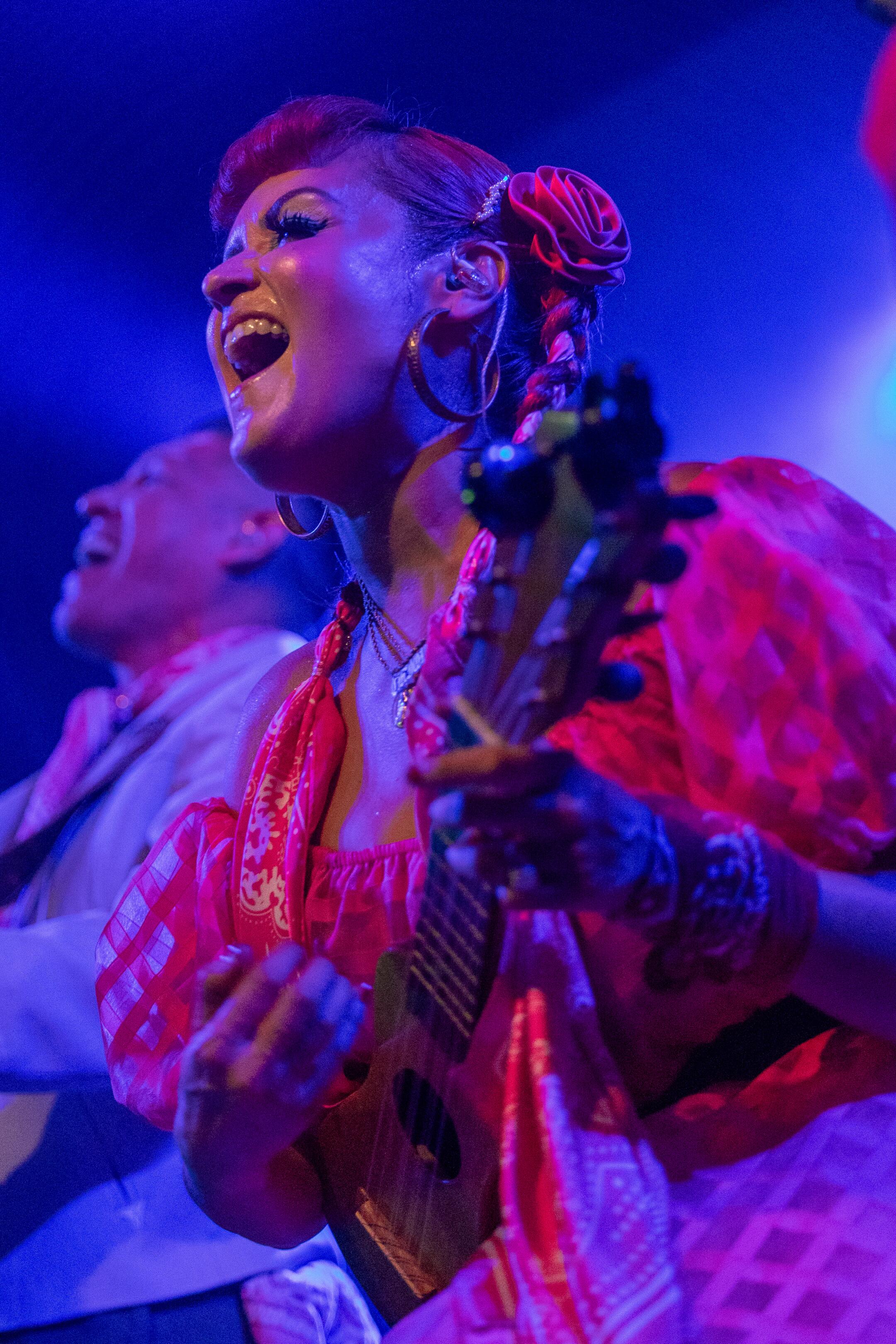 The band, having unveiled their new sound at the Paramount in August, returned to its roots in East L.A. With Las Cafeteras taking over the centenarian stage adorned in matching bandanas and ribbons, the atmosphere noticeably transformed.