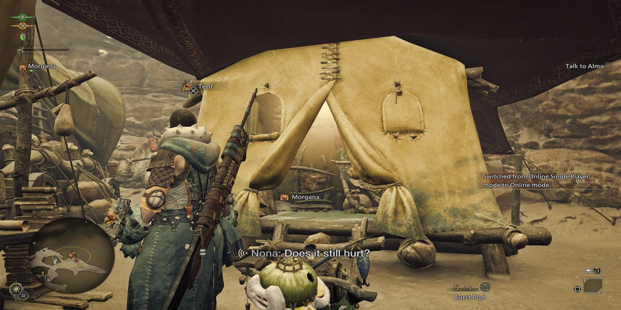 Your tent can also be found at other camps set up throughout the game and pop-up campsites.