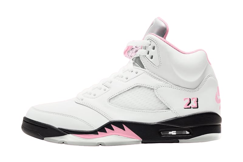 This year, there’s a new colorway for the 35th Anniversary of the Air Jordan 5 on the horizon, according to recent updates from both zSneakerHeadz and Sneaker Files. Although we don’t have a sneak peek at the shoe yet, it is expected to feature a white leather upper with accents of “Medium Soft Pink” on the Nike Air branding at the heel and a “23” callout.