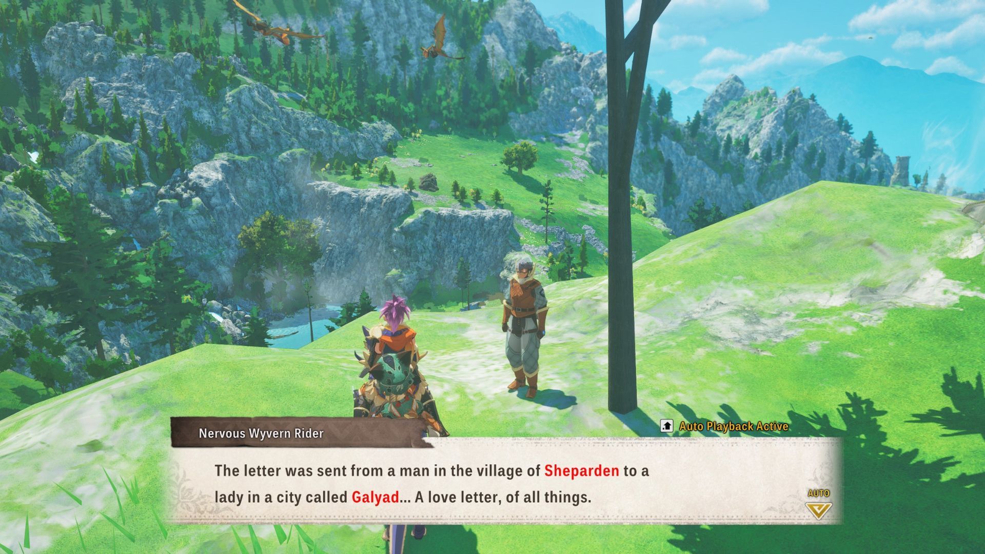 | Reply Over the Wall | Complete the Letter over the Wall quest. Talk to the man by the herb garden in Sheparden, then travel to Mt. Canalta to deliver the Love Letter to Sheparden to the Man Awaiting Letter. Afterward, return to the woman to let her know the letter was delivered. |