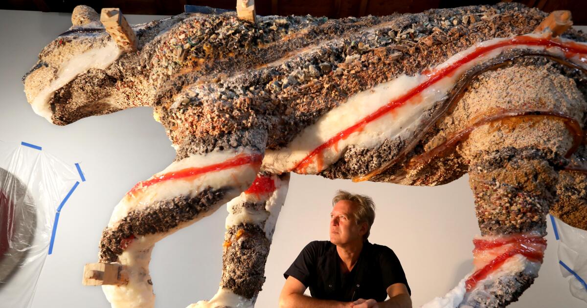More recently, he bought an antique home close to his studio in Mar Vista primarily to dismantle its components for his upcoming art creations. A while back, he also purchased an older transmission repair facility in the vicinity and transformed it into a workshop, where he and his modest crew produce his sculptures and paintings.