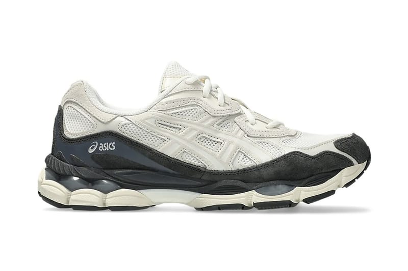 The sports brand ASICS has released a new version of its GEL-NYC sneaker, styled in a “White/Cement Grey” colorway. This shoe combines classic running aesthetics from the past with contemporary performance technology for an appealing blend. The base is made of white mesh material, while the mudguard and midsole top boast “Smoke Grey” accents to provide contrast. A subtle dark navy blue-gray detail can be found on the heel and GEL cushioning units, enhancing the overall design with a touch of depth.