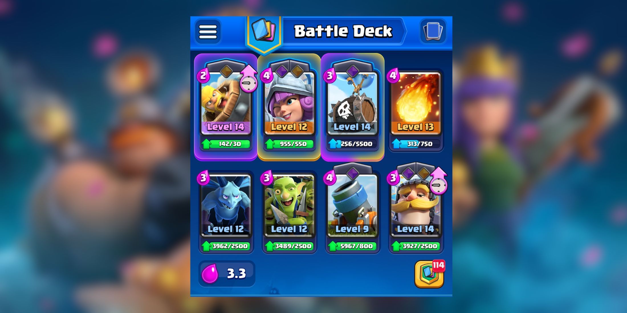 At this point in the game, your options are limited, so most players choose a Giant Beatdown strategy. We recommend a version that includes both Fireball and Arrows. This is because opponents often use cards like Archers, Bombers, and Goblins, and these spells are effective at quickly eliminating them.