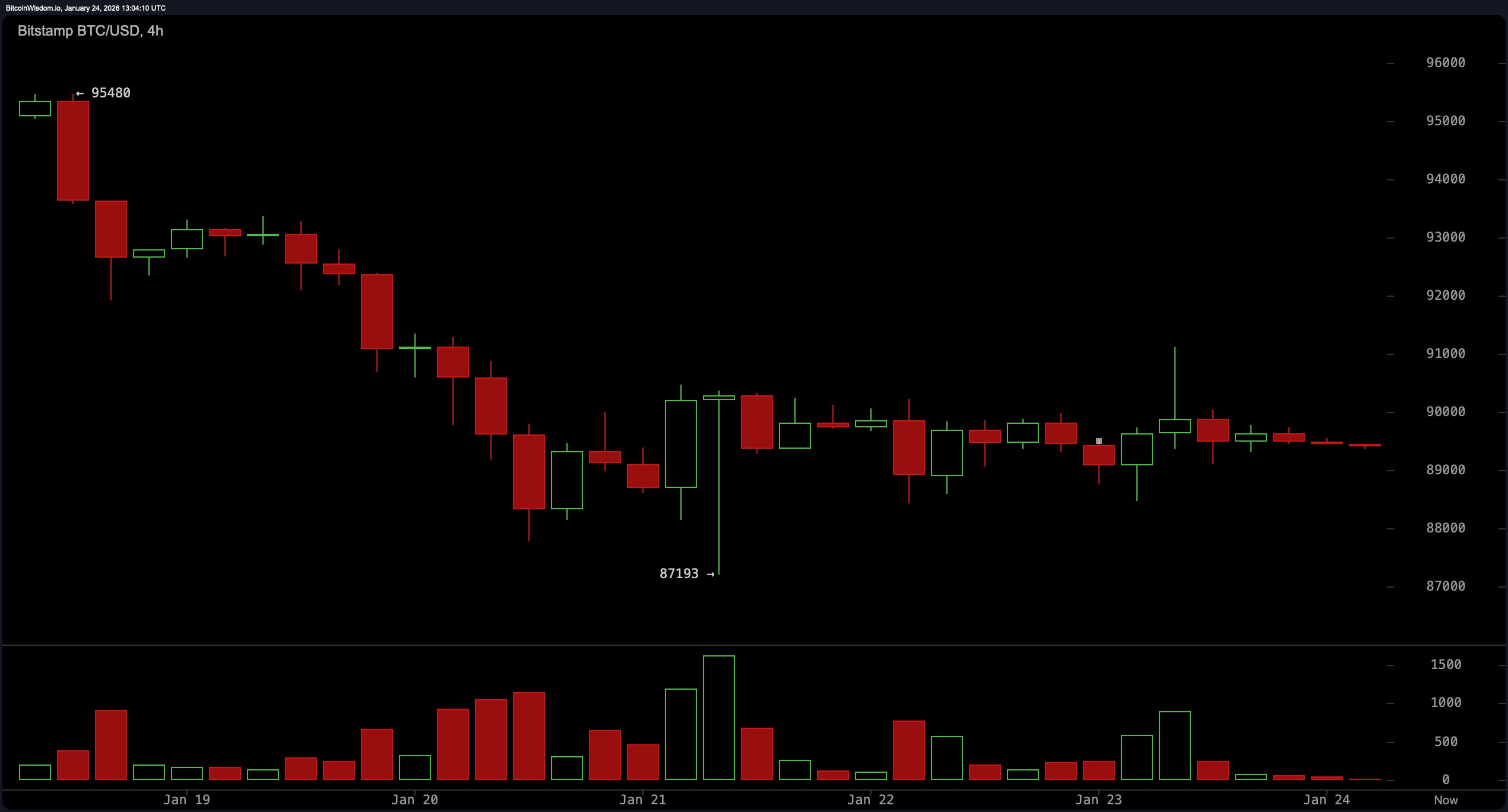 The 4-hour chart presents a more contemplative scene-Bitcoin, like a philosopher with a hangover, sips its coffee and ponders its next move. The descent from $95,480 to $87,193 has softened into sideways meandering, with candles as tight as a miser’s purse and volume as subdued as a library. A minor spike near January 23-24 hints at fleeting interest, but it’s hardly the stuff of legend. The sweet spot? A breakout above $90,500 might open the door to a short-term uptrend, though without volume to serenade it, the attempt may falter like a forgotten ballad.