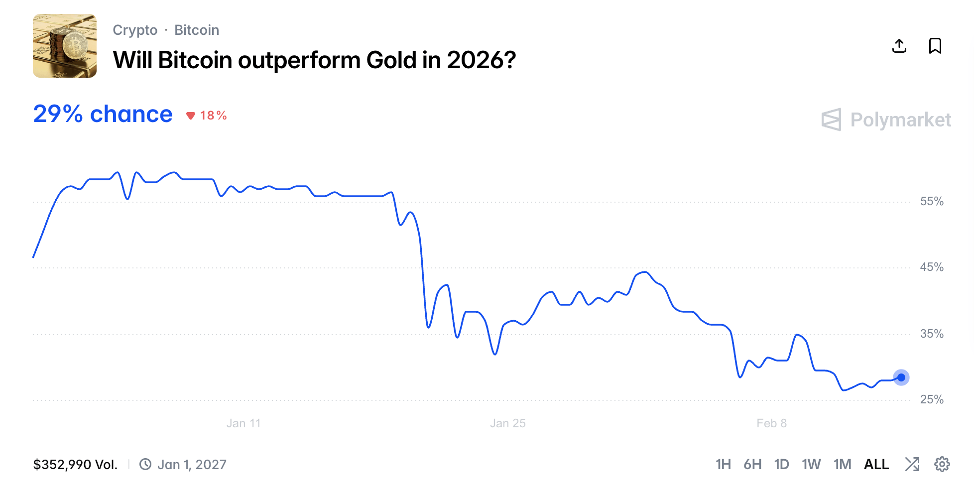 Polymarket also hosts a contract asking: “Will Bitcoin outperform gold in 2026?” Bitcoin has a 29% chance, leaving gold favored at 72%. Ah, the caution! Traders weigh volatility and macro conditions, viewing gold as a steadier performer-a reliable old friend in uncertain times.
