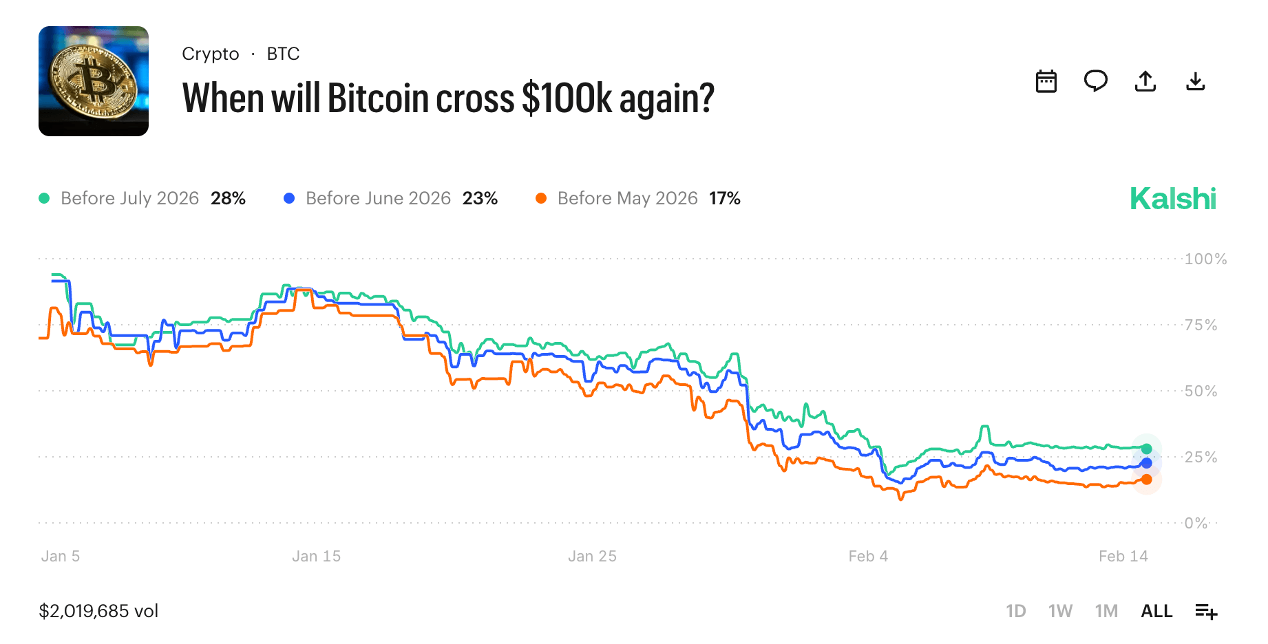 - What do Polymarket traders expect for Bitcoin in February 2026?