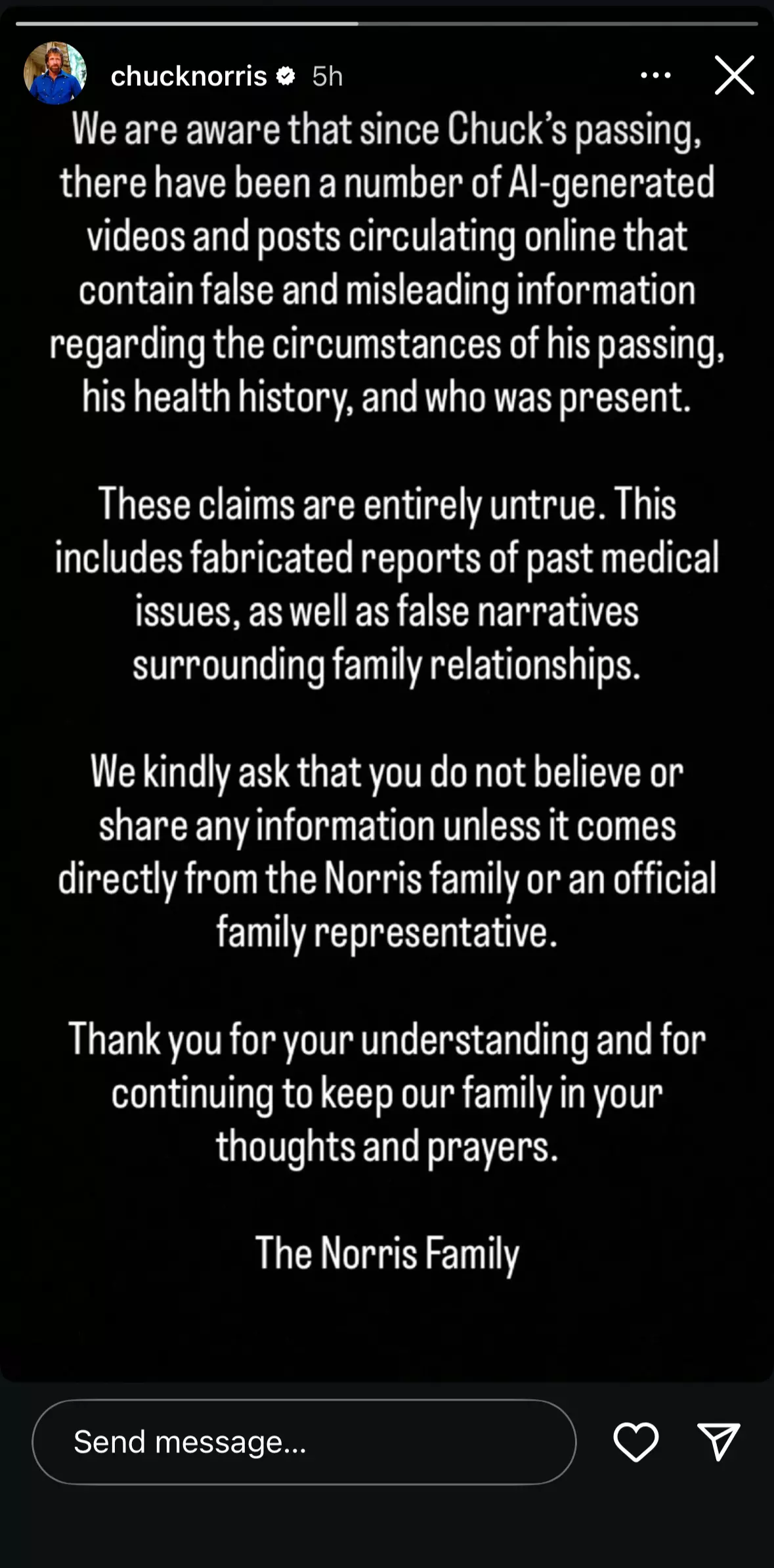 They are now asking fans to disregard and not spread any unverified information they find online regarding Norris’s life and passing.