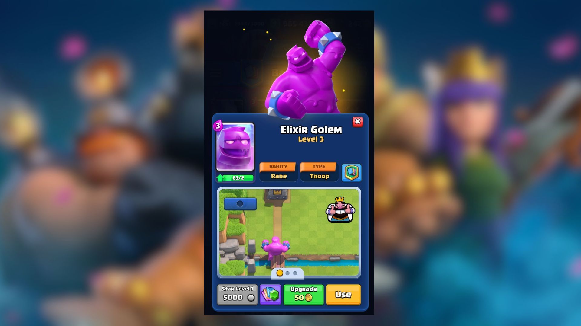 The Elixir Golem is a powerful unit unlocked in Arena 14 that can help you win battles. It targets enemy towers and structures, dealing significant damage if it reaches them. When destroyed, the Elixir Golem breaks apart into two smaller units called Golemites. These Golemites attack quickly, but aren’t as durable or strong as the original Golem. If the Golemites are defeated, they each split into two even smaller Blobs. These Blobs attack very rapidly, but have very little health and deal minimal damage.