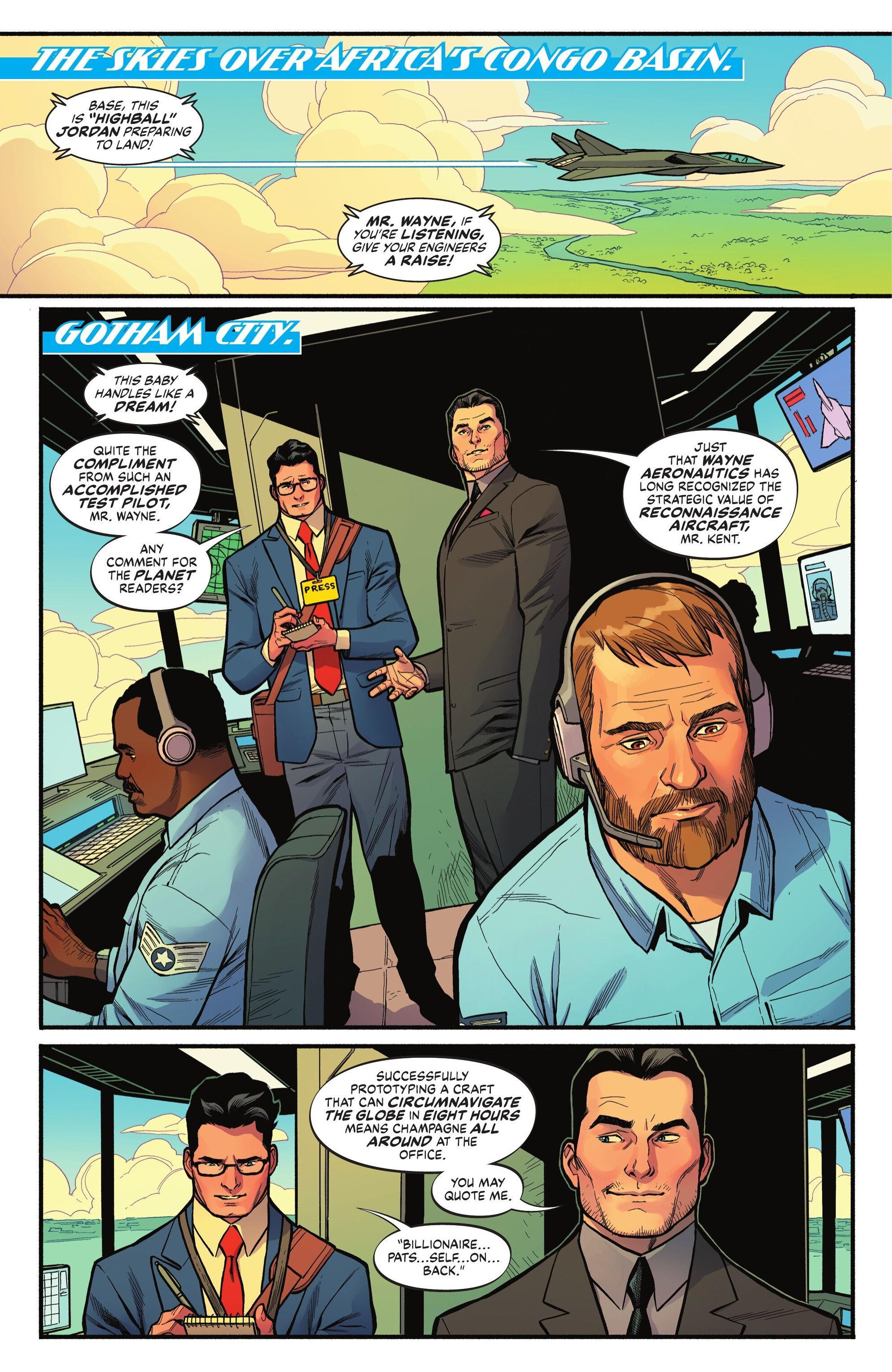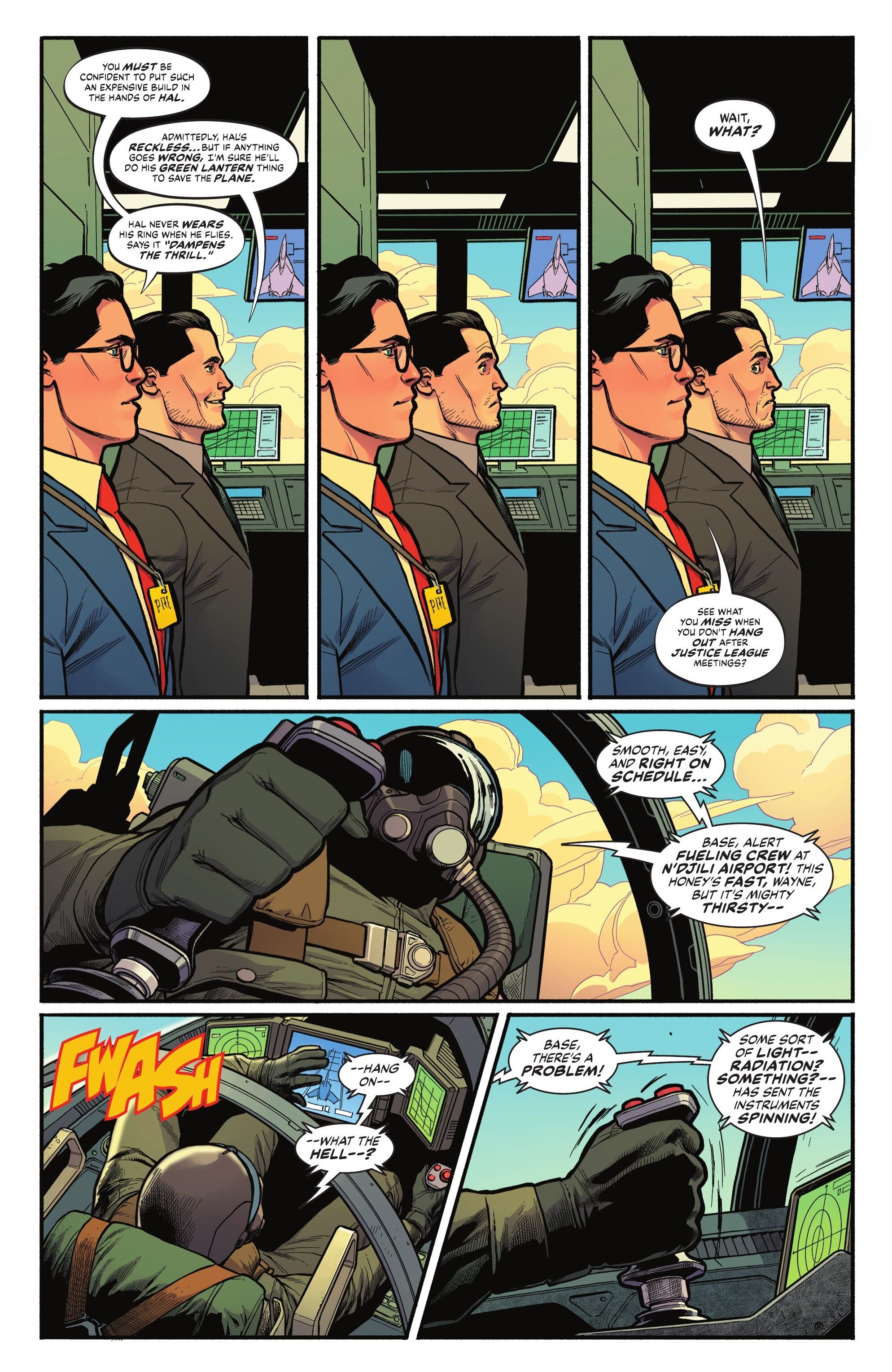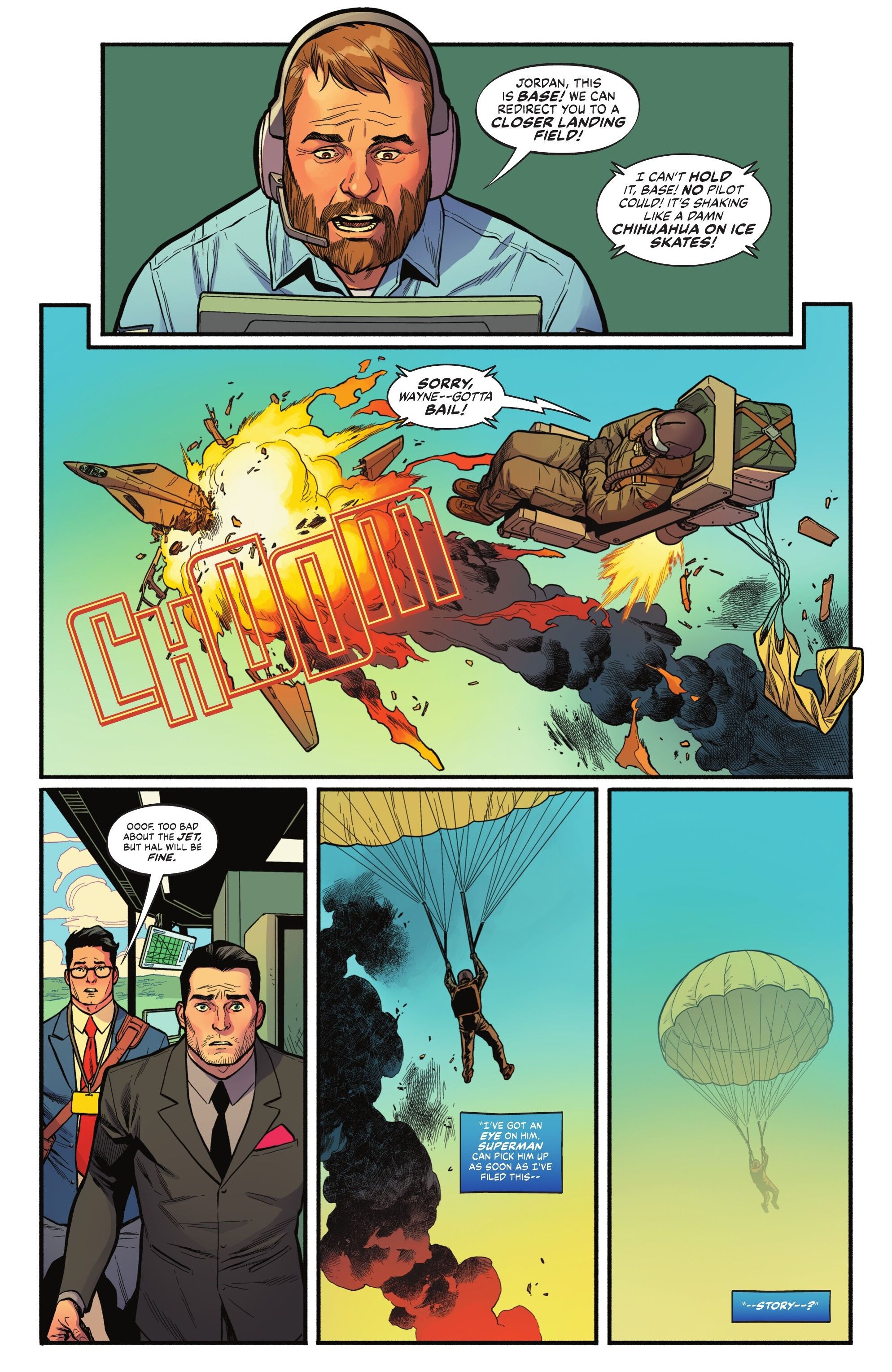 Furthermore, since Waid began working in comics, he’s consistently shown a keen sense of humor. This comic starts with a familiar joke: Bruce Wayne discovers Hal Jordan leaves his Green Lantern ring behind when testing experimental aircraft, which turns into a significant issue when the Waynetech jet he’s flying gets shot down because Jordan didn’t have it with him.