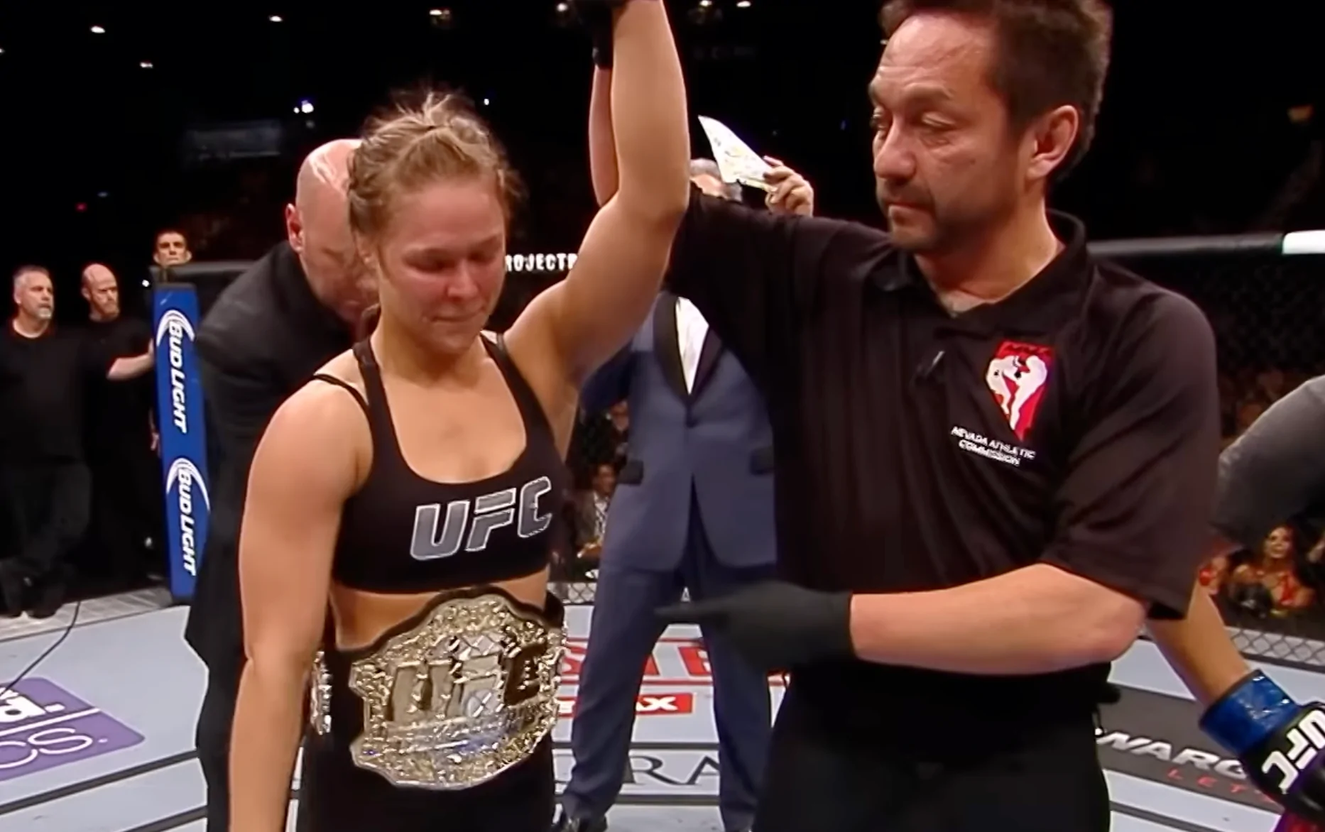 Despite the issues, Ronda Rousey and Cris Cyborg continued to exchange harsh words. In 2015, Rousey brought up Cyborg’s past steroid use and loss of a championship title, stating the choice to fight was entirely up to Cyborg. Rousey publicly called Cyborg a ‘fraud’ and, seemingly addressing Cyborg directly, challenged her to prove she could compete at a lower weight class without using steroids, implying she had previously relied on them to reach 145 pounds.