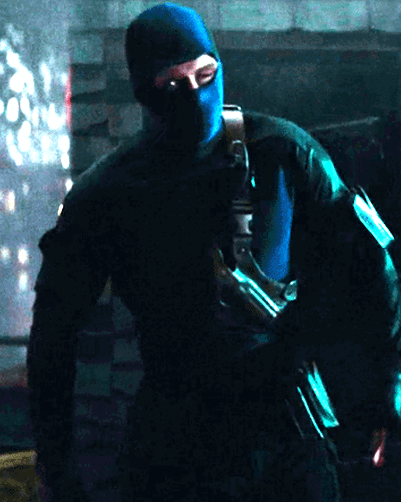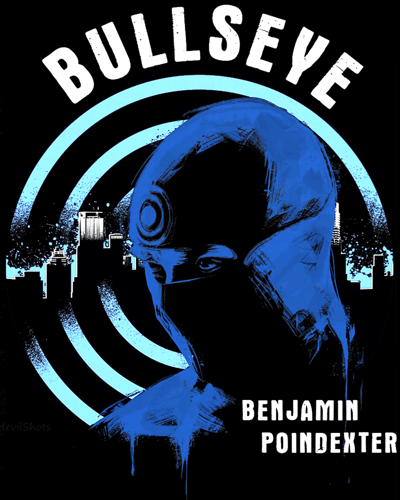 The costume keeps the mainly blue color scheme, but moves away from a realistic, military-style appearance towards a more classic supervillain design. This is the first time a live-action Bullseye has worn a hood that perfectly matches his comic book look.