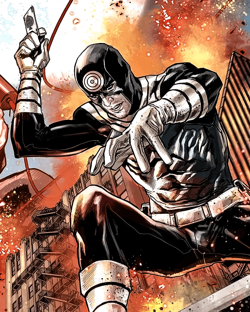 Bullseye is a famous and frightening enemy of Daredevil in Marvel Comics. He’s known for his incredible ability to throw almost anything – even ordinary objects like playing cards, pencils, or paper clips – with deadly precision, turning them into dangerous weapons.
