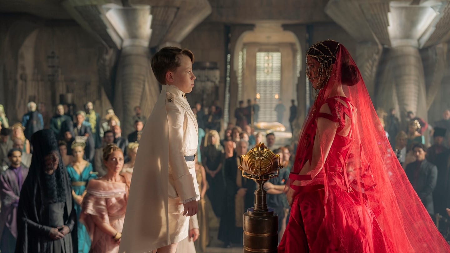 The series shares the same cosmos as Denis Villeneuve’s two Dune films, and there’s a sense of continuity between them. Mostly, they share similarities in terms of opulent attire, majestic architecture, and an overall vibe that hints at a harsh, uninviting environment. However, one scene breaks the mold: when Ynez and her brother visit the nightclub. The pulsating music and overall atmosphere give it a sci-fi Tron-like feel. It’s worth noting that, given its brief runtime, this series lacks the grandeur of feature films.
