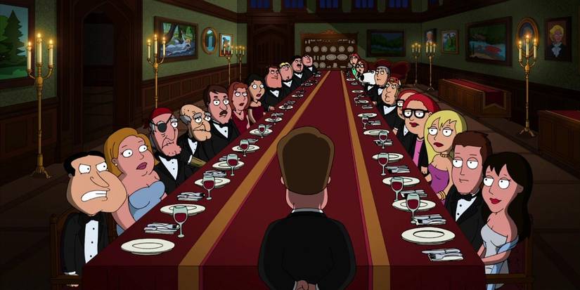 Okay, so in this “Family Guy” episode, “And Then There Were Fewer,” the Griffins get invited to this fancy dinner party at some creepy mansion way out in the boonies. Turns out, pretty much everyone in Quahog got the same invite! It’s all thanks to James Woods, who it turns out has messed with everyone there. He claims he wants to make amends, but then – plot twist! – he ends up dead. It’s a seriously messed up dinner party, let me tell you!