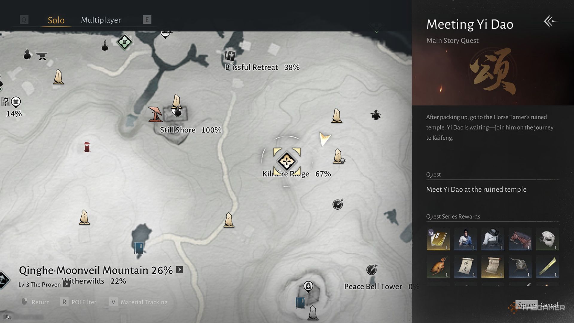 Your first task is to return to the ruined temple – the place where you defeated the Horse Dancer – and find Yi Dao. Talk to him, and you can learn about his history and Chu Qingquan. While you’re speaking with him, you’ll notice some mysterious figures arriving by boat and heading towards Blissful Retreat.