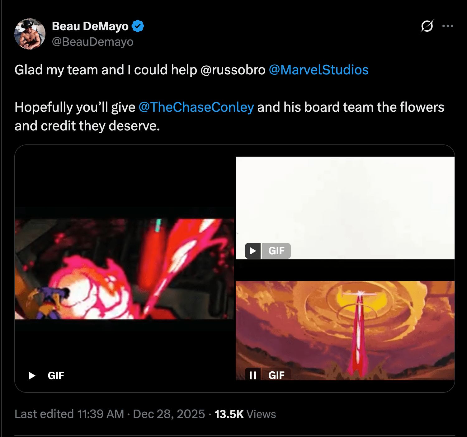 DeMayo clarified that his remarks were meant to highlight the contributions of the artists and animators who worked on the project, not to downplay the efforts of everyone involved with Avengers: Doomsday.