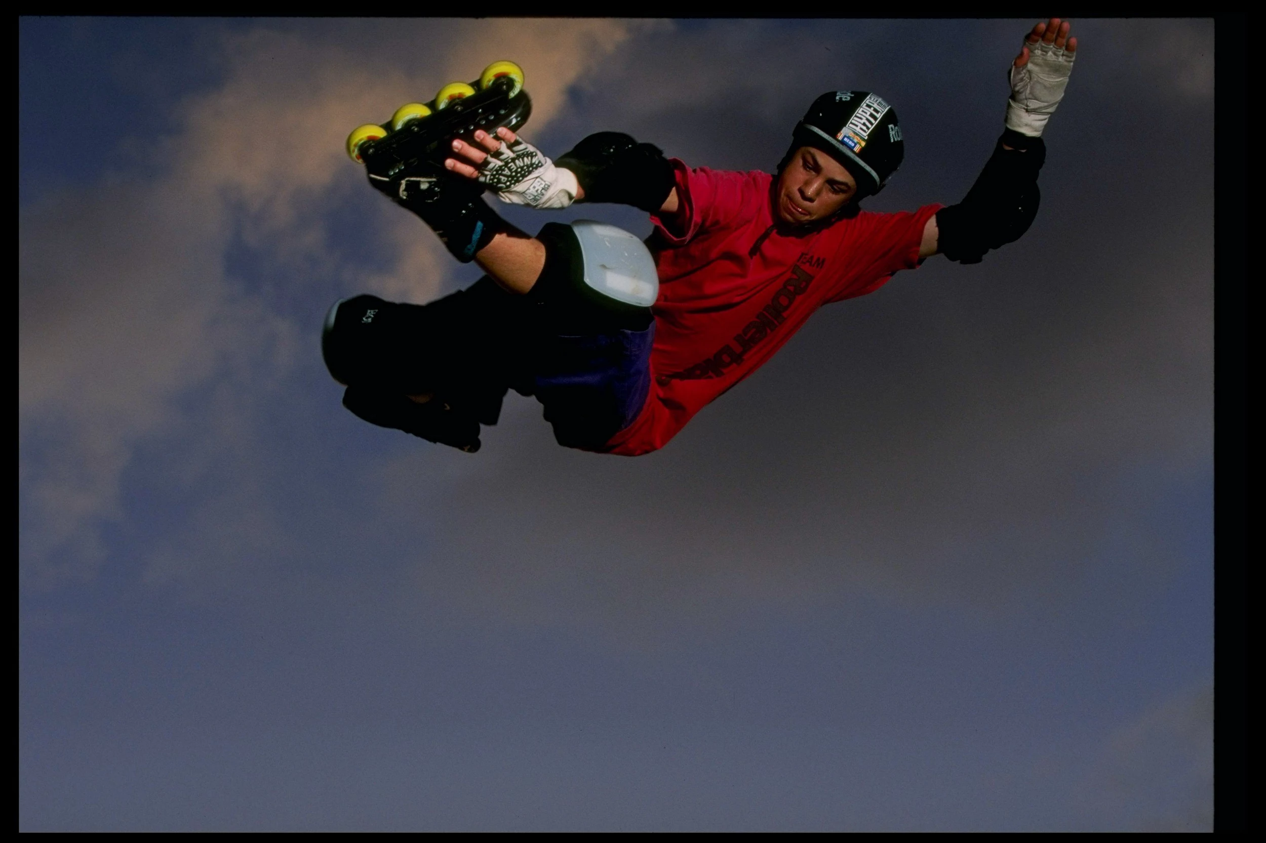 1981 photograph of the pop band Bucks Fizz (comprising Mike Nolan, Cheryl Baker, Jay Aston, and Bobby G), who can be seen donning roller blades in this image, captured by photographer Keystone Colour. (Image courtesy of Getty Images)