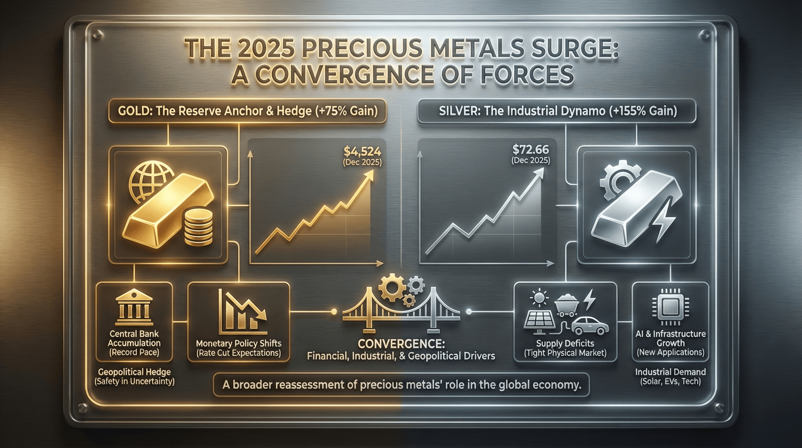 The 2025 performance of gold and silver ultimately reflected a convergence of financial, industrial, and geopolitical forces. Rather than a narrow speculative episode, the year’s gains signaled a broader reassessment of precious metals’ role within global markets as economic and technological transitions continue. 🌐