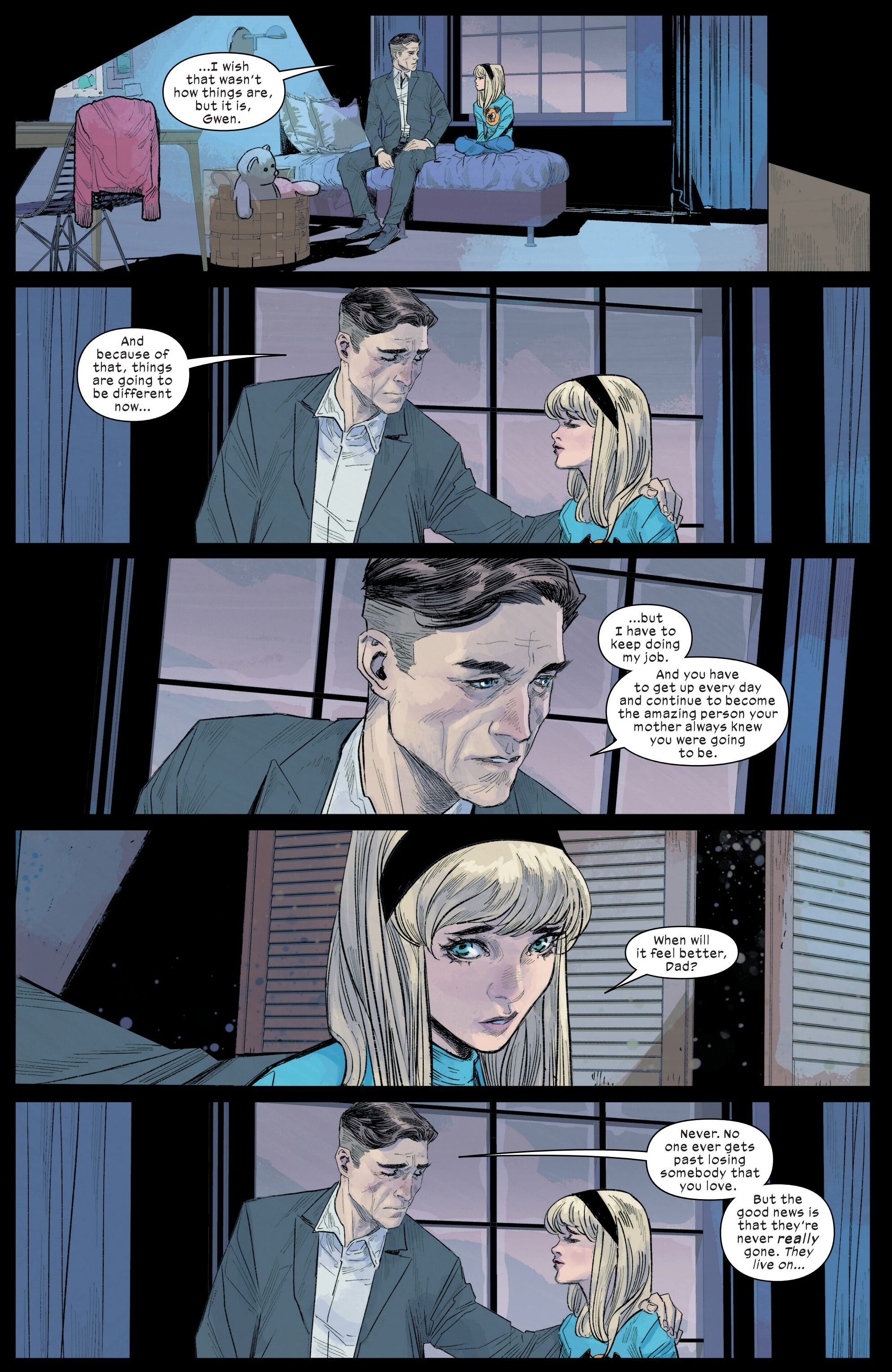In this series, the focus shifts towards Gwen Stacy, a shift that seems particularly relevant given her limited role so far in the story. Notably, her husband, Harry, appears to be deceased now (it was previously mentioned that even when Harry was initially killed, there were doubts about his fate).