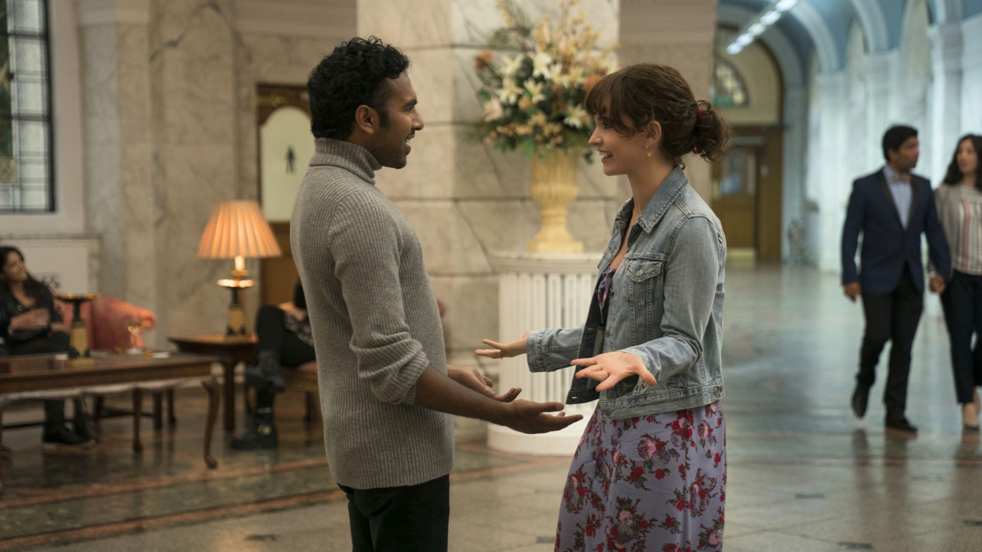The movie Yesterday features Himesh Patel as Jack Malik, a musician who discovers he’s the only person who remembers the Beatles. He starts performing their famous songs, pretending they’re his own, and quickly becomes a star. Lily James plays Ellie, Jack’s longtime friend, who supports his newfound success. As they travel and perform together, romantic feelings develop between them, but Ellie is already engaged, adding a layer of complexity to their connection.