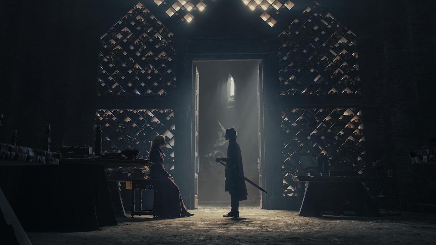 The whole “Red Sowing” episode has some good “Rhaenyra might be taking this prophecy too seriously” moments. When she’s trying to recruit peasants to be part of her new Targaryen air force, she basically locks them all in a room with a couple of huge dragons and waits to see if anyone will survive. There’s a bit of a mad glint in her eye when Hugh Hammer manages to claim the dragon Vermithor. I like creepy Rhaenyra and hope she shows back up in season 3.