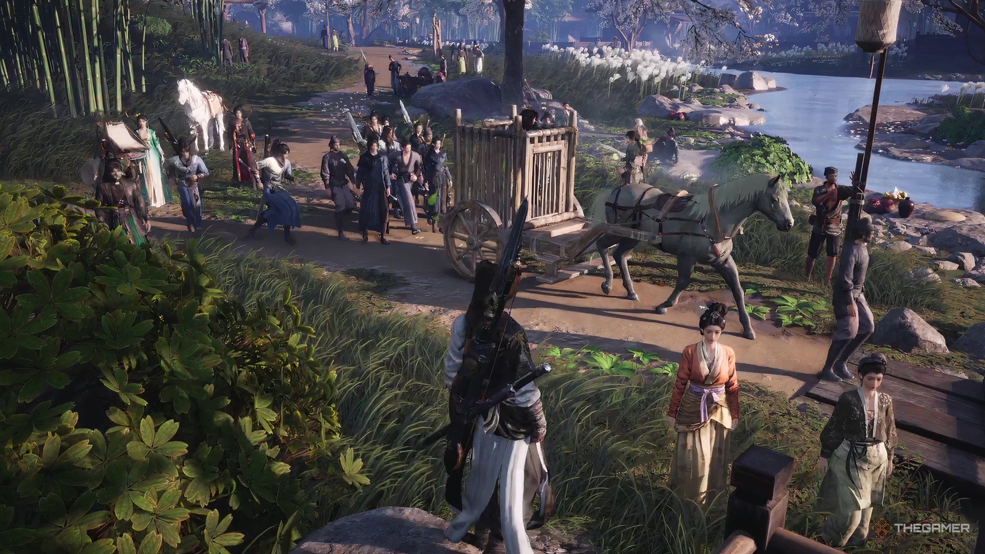 When a player commits a crime in Where Winds Meet, they’re publicly shamed by being dragged through town in a wooden cart pulled by a horse, with guards on each side. During these special events, players worldwide can watch and participate by throwing food at the offender as a form of public humiliation.