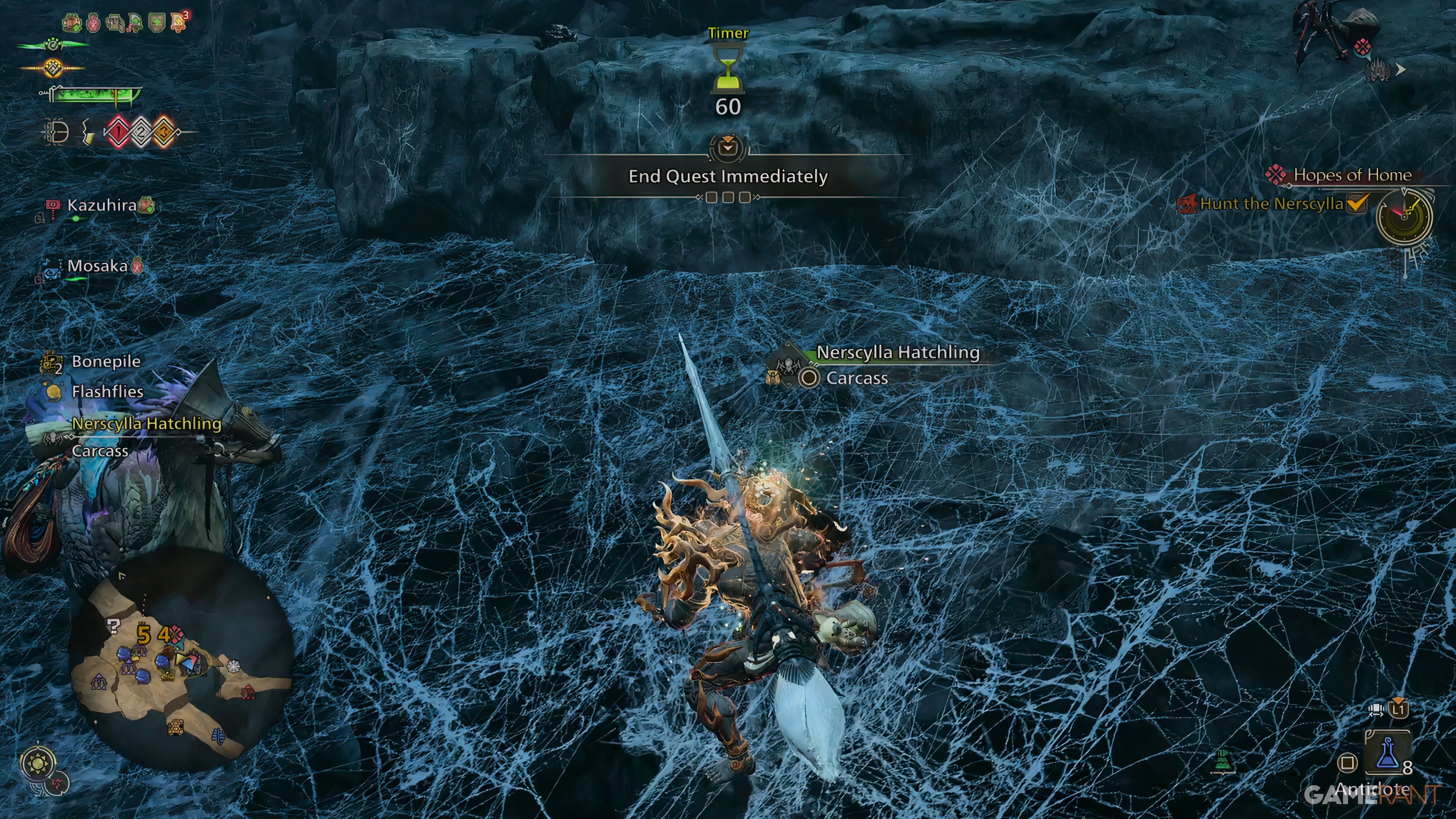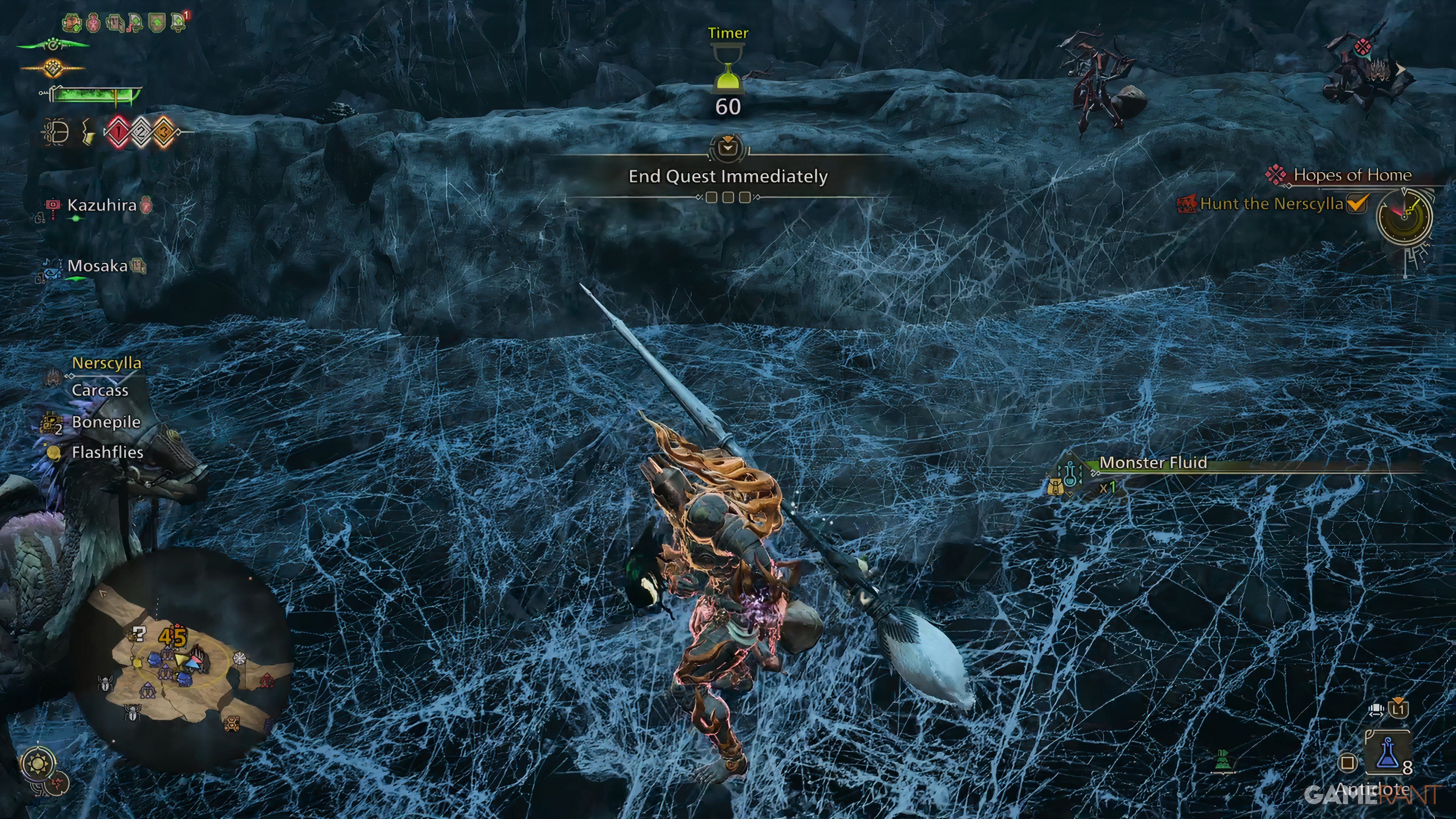Once you’ve advanced through the primary narrative and arrived at the Iceshard Cliffs, you’ll encounter the monster Nerscylla during the main mission titled “The Stealthy, Cunning Assassin.” This formidable creature is accompanied by Nerscylla Hatchlings nearby. If you carve these hatchlings, they guarantee a 100% drop of Monster Fluid.