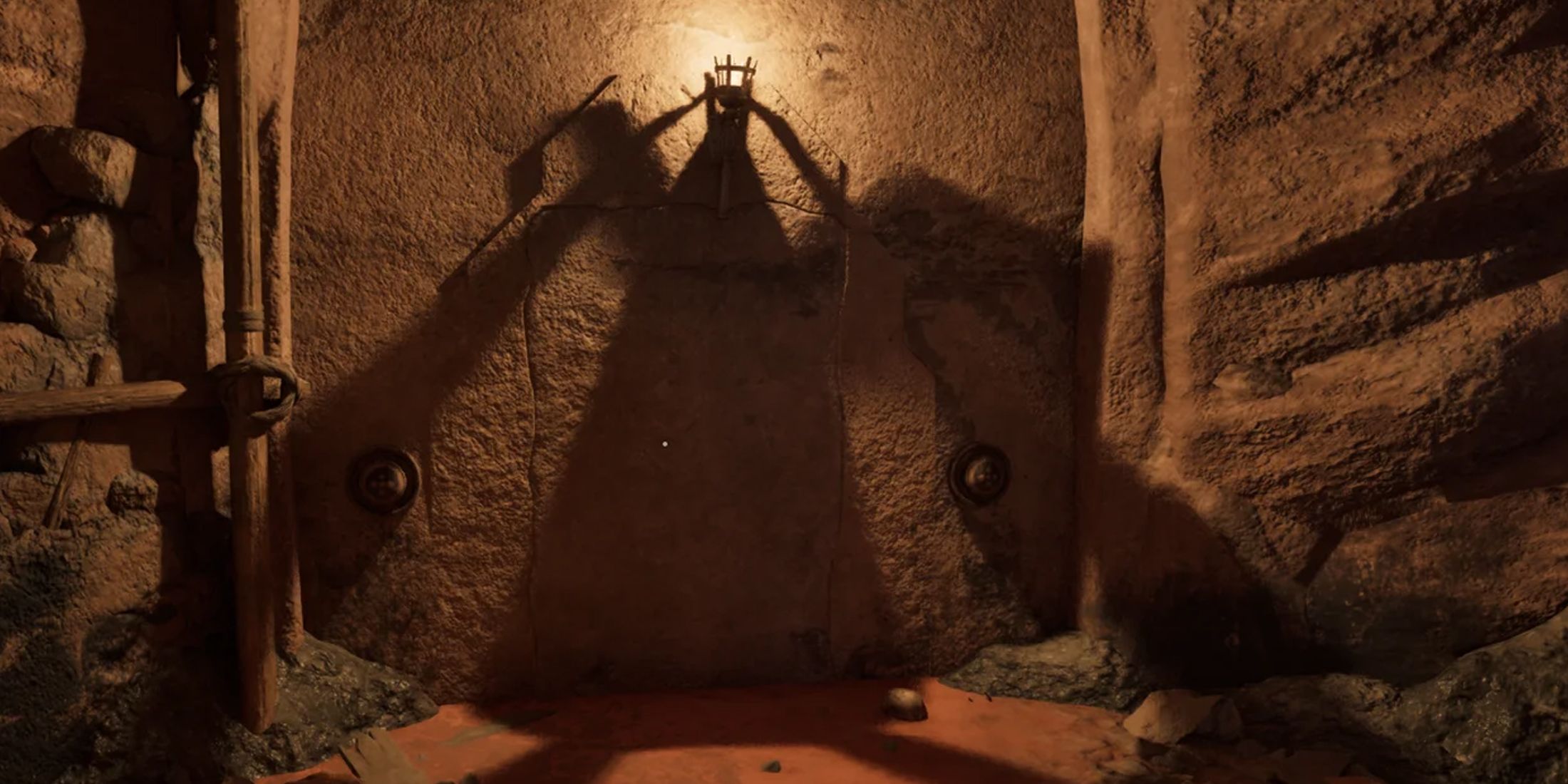 Secret Door With Two Switches: Climb up the wooden platforms above the flooded chamber and make your way left. Keep going and you will come across another secret door. This one, however, has two switches, one on each side of the door. Hit the switch on the left to open the hidden room.