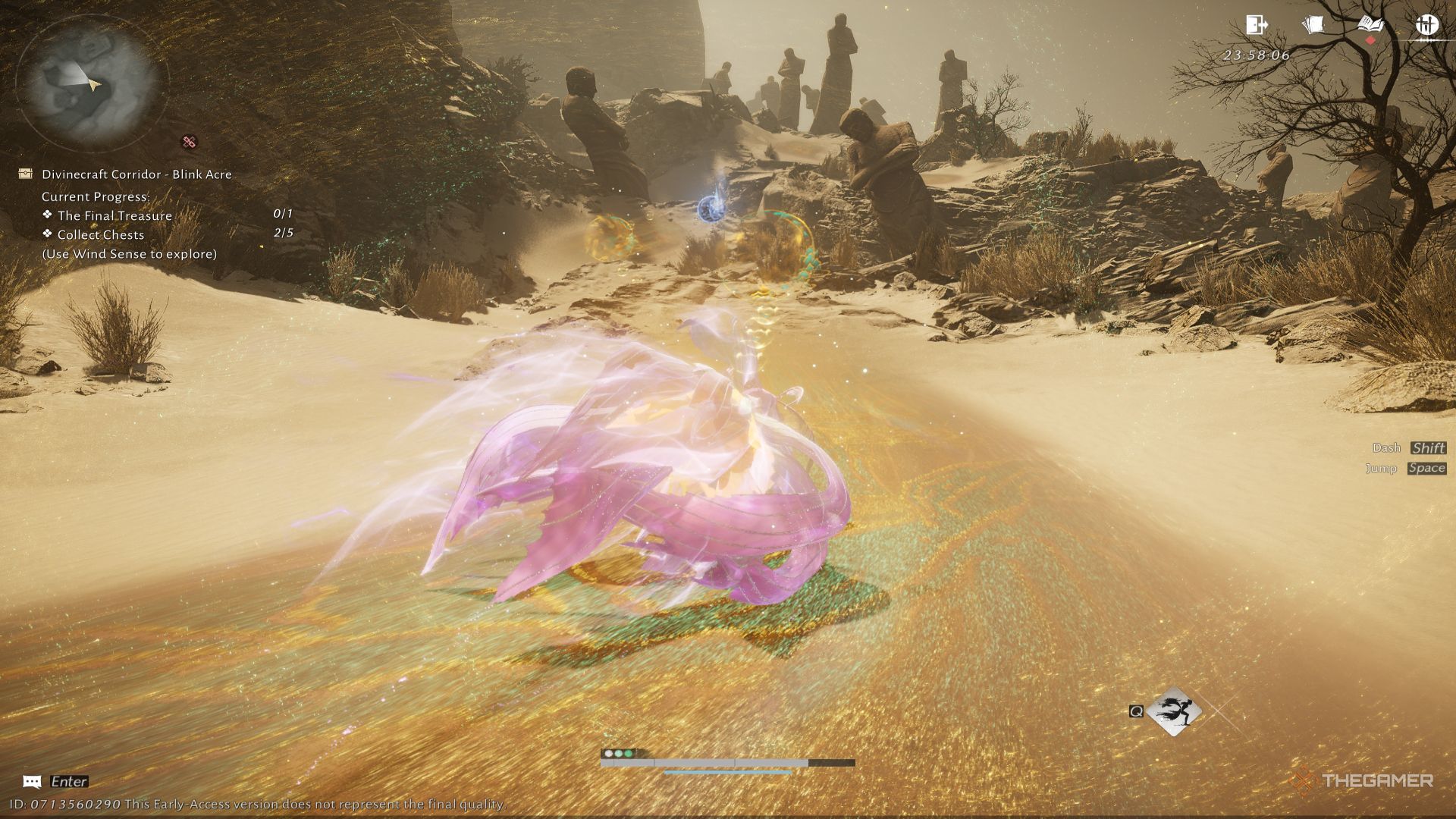 The entrances to the puzzles are scattered across the map and are easy to spot thanks to their bright, golden shimmer. The archway, which resembles a waterfall, is a prominent landmark and stands out even in the desert landscape.