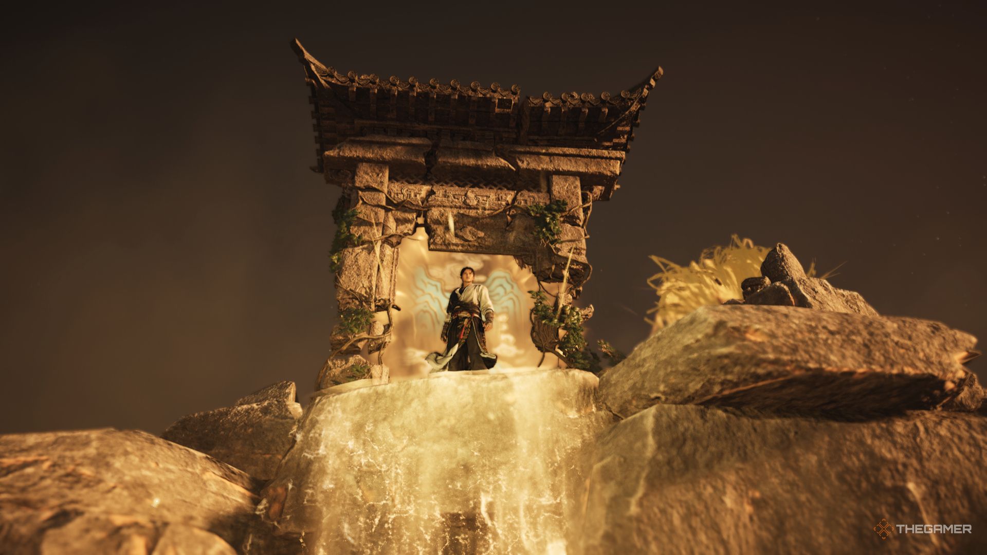 As you explore the Jade Gate Pass, you’ll find shimmering, golden water flowing from broken archways. These archways lead to special puzzles in the Divinecraft Corridor. Successfully completing these puzzles using your skills will reward you with unique items. When you step through an archway, a short video will play before you’re taken to the puzzle area.