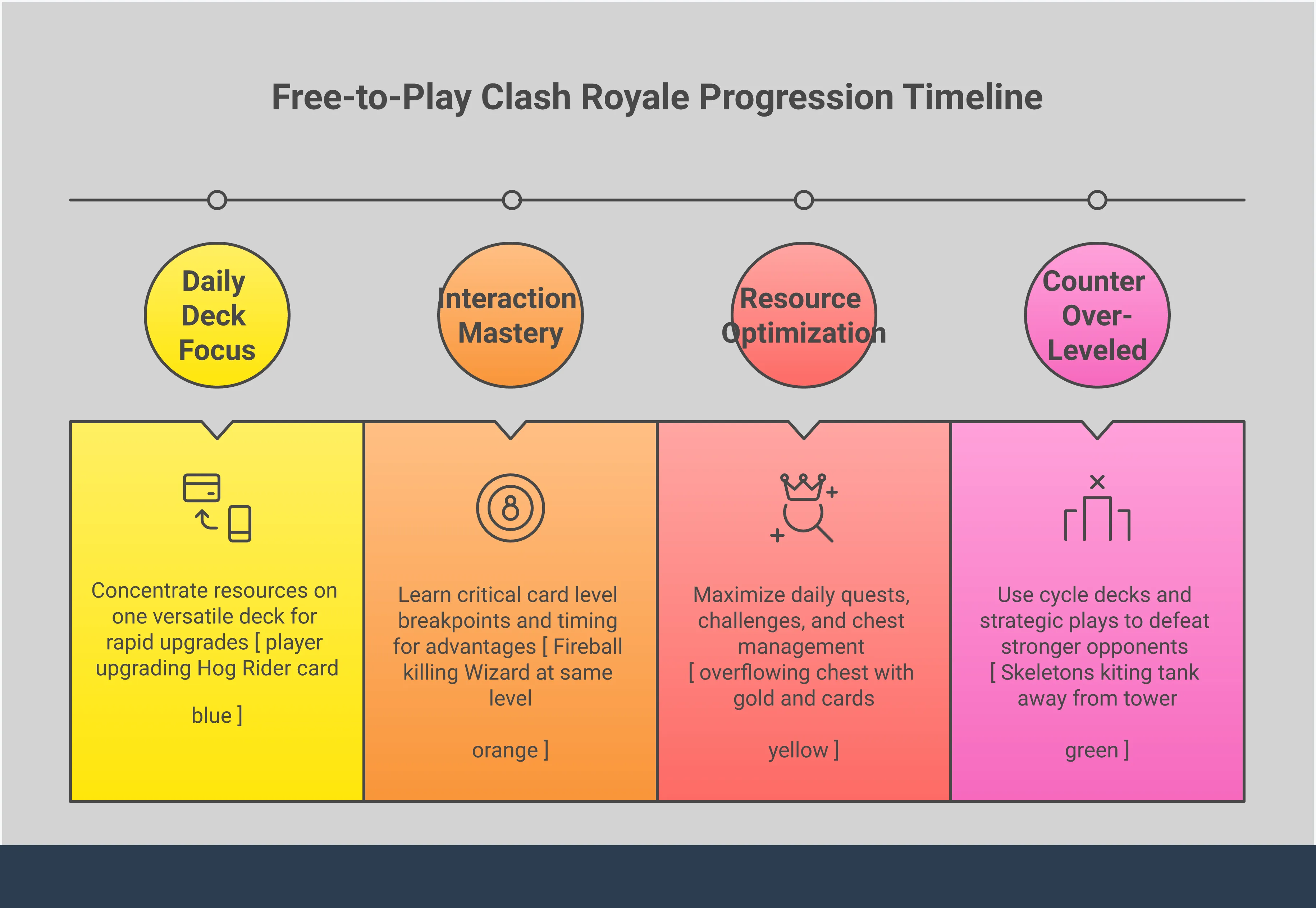 Becoming successful in a free-to-play game takes time and dedication. It’s not about quick wins, but about being patient and managing your resources carefully. Don’t try to upgrade every card you get – instead, pick one or two strong decks and focus on improving those. This lets you save your gold and ask for specific cards you know will help. Joining an active clan is also crucial, as the cards you receive from other players will significantly speed up your progress. If you play strategically, complete challenges, and gradually build your collection, you can compete at a high level without spending any money.