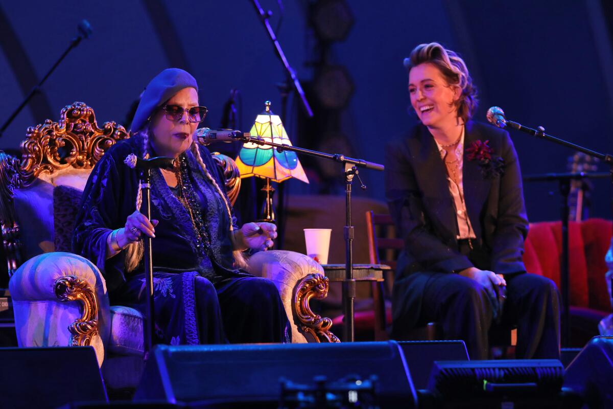 At the start, Carlile announced an unexpected surprise for everyone attending – a show filled with songs they might not anticipate hearing. This could potentially be nerve-wracking for casual fans. Later on, Carlile excitedly proposed a group sing-along, which was met with great enthusiasm. Subsequently, Carlile teamed up with Mitchell to perform “Carey” from the iconic 1971 album “Blue.” Mitchell also dueted with Marcus Mumford on “California,” and performed “A Case of You” in a way that highlighted the roughness now present in her once pristine voice.