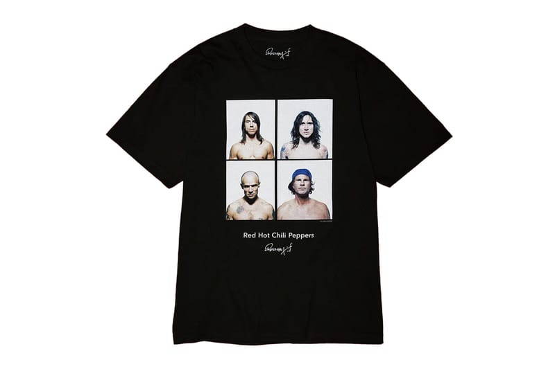 Slated for release in late June, this capsule showcases T-shirts with photographs taken by Ross Halfin, a renowned British photographer. Each item puts his work front and center, coming in either black or white versions. The monochrome images of the band feature individual shots of John Frusciante, Chad Smith, Flea, and Anthony Kiedis, as well as collages and group photos.