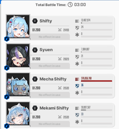 | Mekami Shifty | Skill 1: 1 Skill 2: 1 Burst: 1 |