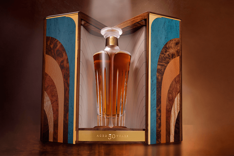 In a span of half a century, the six-piece set from Midleton Very Rare was meticulously crafted to honor the distillery’s bicentennial. This exceptional beverage has been matured in retired bourbon barrels made from American oak, which gives it a robust, wooden taste with undertones of fruit, oak, and tobacco. The bottles are housed in intricately carved wooden cases and embellished with 18-karat gold, making each one a unique piece of art.