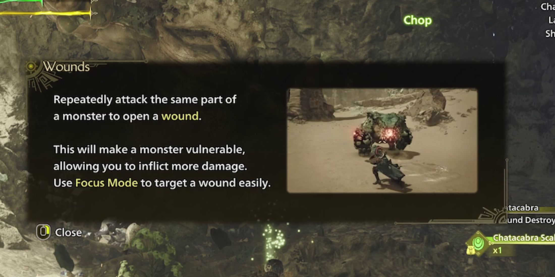 Hitting a Wound in a monster increases the damage you deal, either as a bonus or critical hit, which is indicated by distinctive dark orange numbers with corners on each side. Aiming for these wounds maximizes your damage output against monsters, and to accurately target them, utilize the Focus Mode.