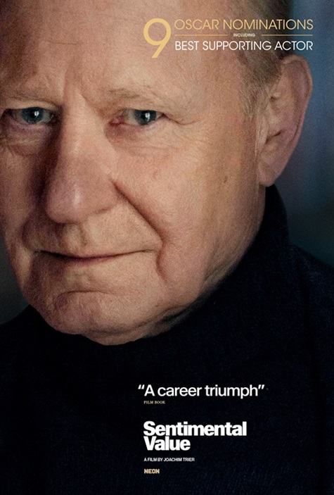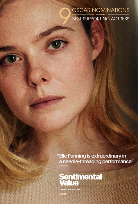 “Sentimental Value” tells the story of a family trying to mend their fractured relationships after years of hidden hurt and distance. Renate Reinsve and Inga Ibsdotter Lilleaas star as two sisters with distinct personalities but a strong bond. Stellan Skarsgård plays their father, who unexpectedly returns to their lives, and Elle Fanning portrays an observer who offers a fresh outlook on their connections. The film features complex, well-developed characters and outstanding, award-caliber performances. You can find my complete review here.