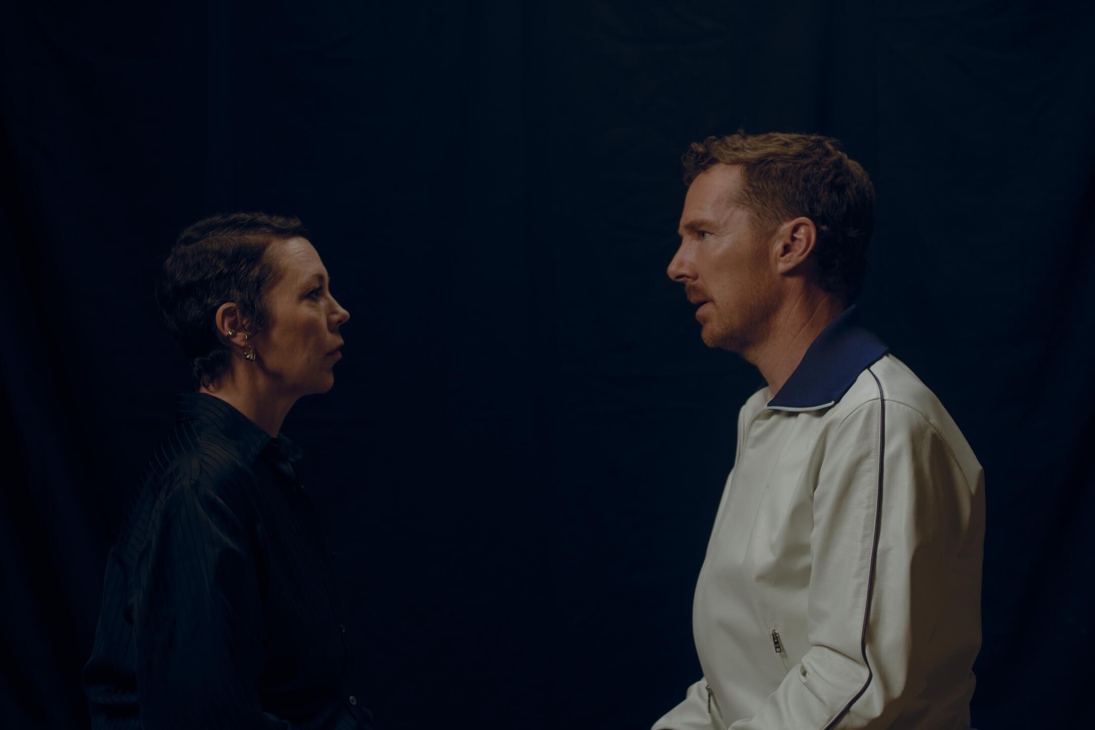 Olivia Colman admits to feeling rather weary after a tiring day of media events for “The Roses,” the humorous yet edgy black comedy she made with Benedict Cumberbatch last year. They are both noticeably relaxed, slouching in their seats during our Zoom call from a London hotel. It turns out she’s opted for comfort over formal footwear, wearing slippers instead of shoes.