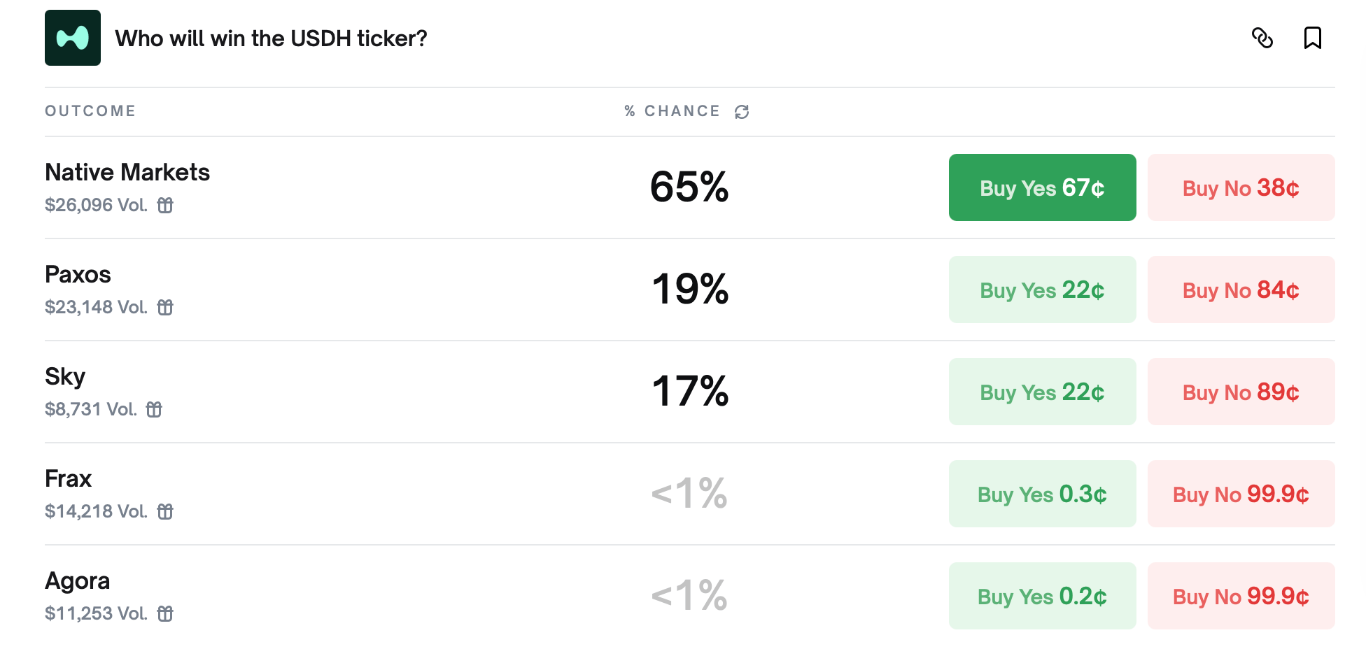 According to Polymarket odds, Native Markets is sitting pretty at 65%, while Sky lags behind at 17%. Poor Bastion didn’t even make the cut-it’s like being uninvited to the cool kids’ table. 🙈