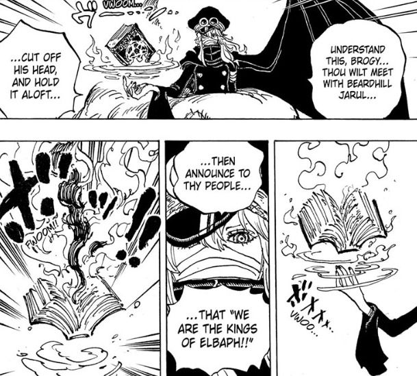 In addition to the monumental developments involving Imu’s control over Giants using Domi Reversi, One Piece issue 1150 is an exhilarating and chilling read. This is largely due to the eerie emergence of Gunko under Imu’s demonic possession. To add dramatic effect and possibly symbolism, Gunko transforms into a fearsome figure with a pair of black bat wings, a wicked tail adorned with an arrow tip, and a trident, all of which appear after Imu assumes control over her. The implications of this demonic metamorphosis are hard to overlook, especially in the wake of Imu compelling Brogy and Dorry into a Domi Reversi contract, whereby he seizes a piece of their lifespan in exchange for eternal life and increased power – a classic trope found in stories about supernatural bargains.