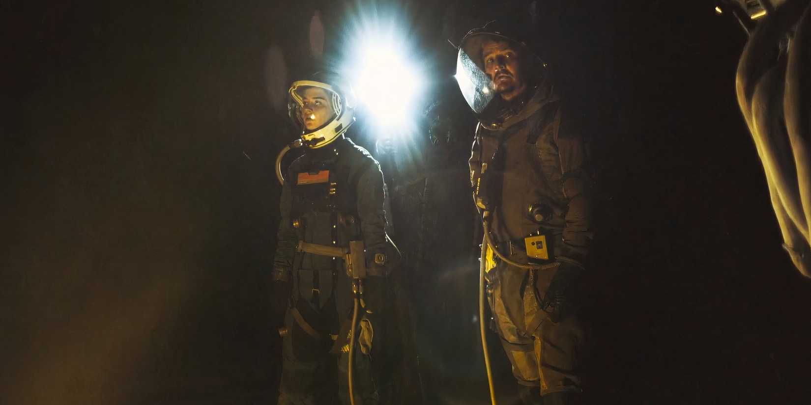 Prospect is a 2018 sci-fi movie featuring Pedro Pascal and Sophie Thatcher. They play members of competing teams trying to harvest a valuable gem on a distant, alien moon. The story begins when Cee and her father are confronted by Ezra and his colleague.