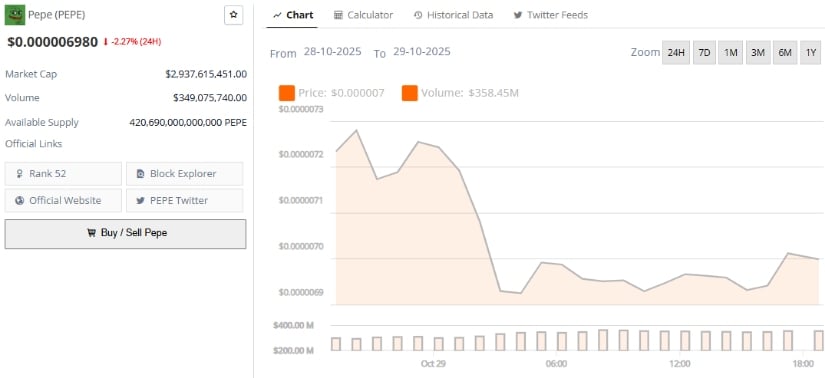 If the critical support holds, the Pepe crypto price can move into a robust recovery phase by the close of 2025. Investors who require exposure to the Pepe meme coin should note this as a critical point to watch for potential breakout plays. Weekly candlestick charts indicate firm historical support, and accumulation patterns hint at sustained community interest. Meme coins ride rallies in the bigger assets like Bitcoin and Ethereum, giving more context for PEPE’s possible increase. Traders must be watchful at the same time with the volatility of the coin and the unclear direction of the bigger crypto market. Because nothing says “fun” like risking your rent money on a frog. 🐸🎲