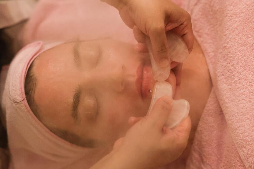 At the JY Beauty salon in San Gabriel, they offer a ‘face tendon’ or ‘TikTok’ facial treatment that employs gua sha and lymphatic massage techniques to tighten and elevate your skin, lessening the appearance of aging symptoms.