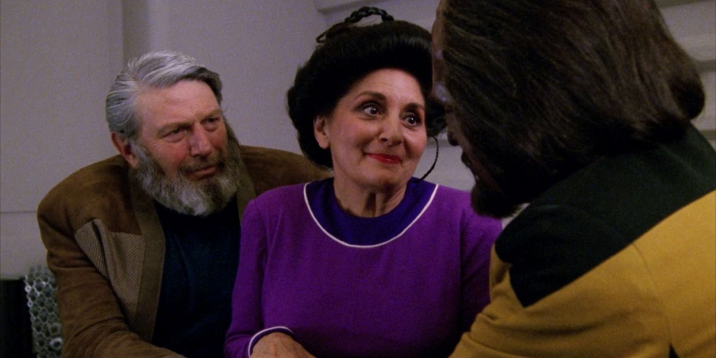 As a passionate Star Trek fan, it’s not surprising that I find Worf’s determination to have a traditional Klingon wedding deeply resonant, given the backstory we uncover in “Family”, the second episode of Star Trek: The Next Generation’s fourth season. You see, Worf was brought up on Earth by my human parents, Sergey (Theodore Bikel) and Helena Rozhenko (Georgia Brown), after he was orphaned during the Khitomer Massacre. Struggling with his recent dishonor from the Klingon Empire, Worf felt his parents might not comprehend his choices. However, despite their limited understanding of Klingon culture, they’ve always nurtured Worf’s quest to embrace his roots because they deeply care about him—regardless of any honor or dishonor he may face.