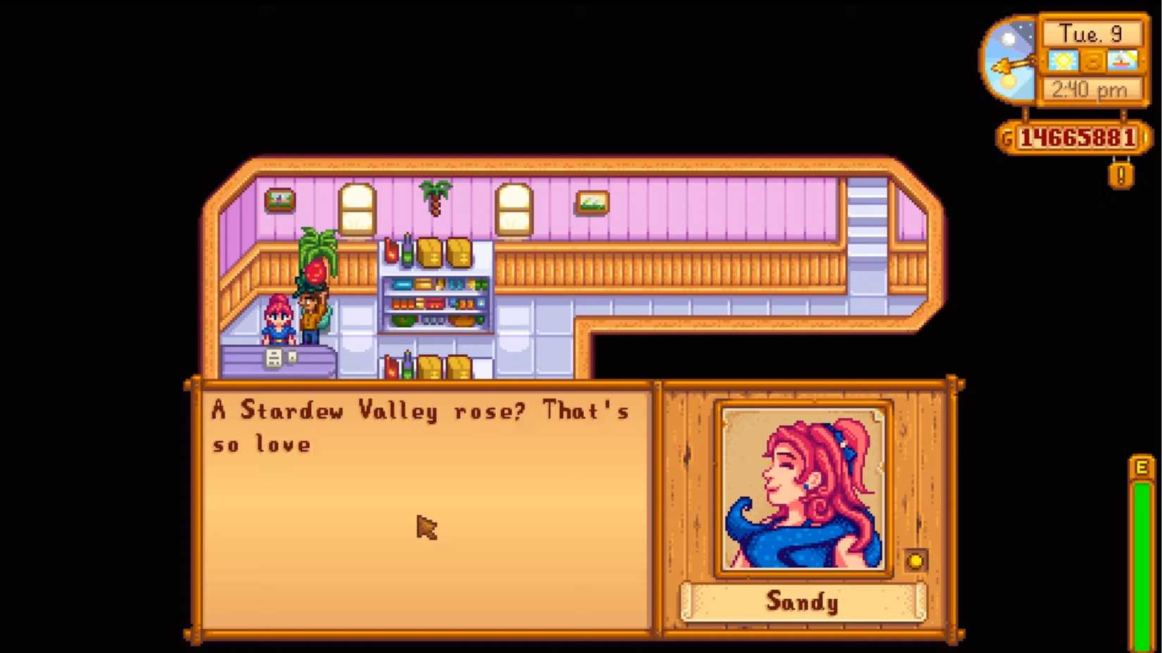 Sandy runs a shop in the Calico Desert in the game Stardew Valley. After the 1.1 update, she received a lot of support from players who wanted her to be a marriage option – over 20% voted for her! While the game developers could create entirely new characters for players to romance, letting players build relationships with characters they already know and like, such as Sandy, is likely to be more popular.