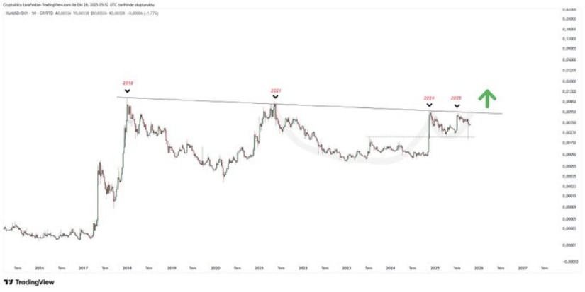 Cryptollica, a.k.a. your new favorite chart whisperer, has pointed out something rather significant in Stellar’s multi-year chart-its price has been slamming into resistance since 2017. It’s like that one door in every office that never seems to open. This time, however, it’s taking another swing at breaking through, with the latest “cup and handle” pattern nearing the end of its build phase, as it gets ready to put on a show in 2025. Is it a cup of gold? Only time will tell.
